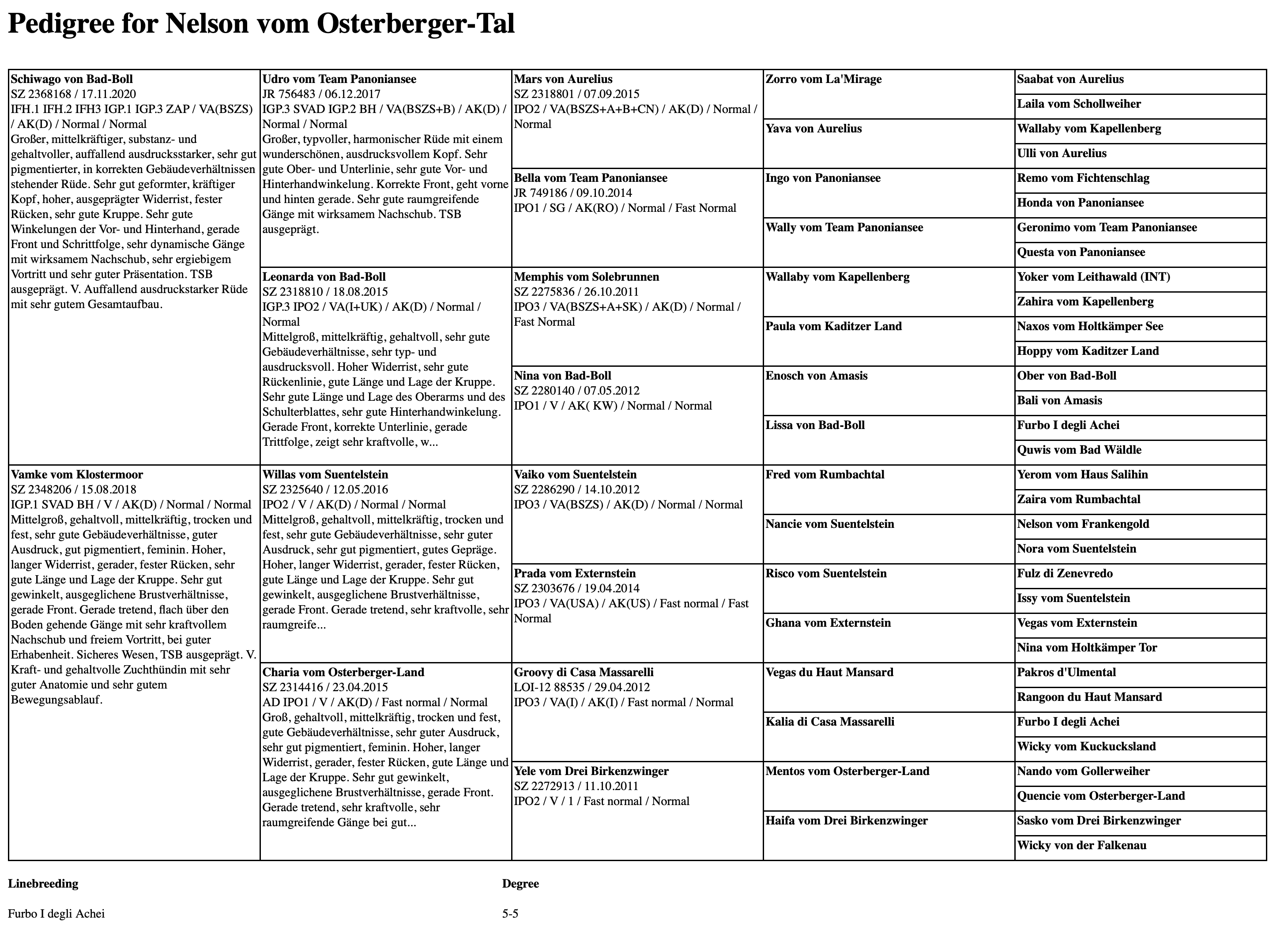 NELSON‘s father is VA2 vice SIEGER SCHIWAGO, whose father UDRO is also VA (excellent select) as is his father MARS. SCHIWAGO’s mother is also VA as is her father MEMPHIS.