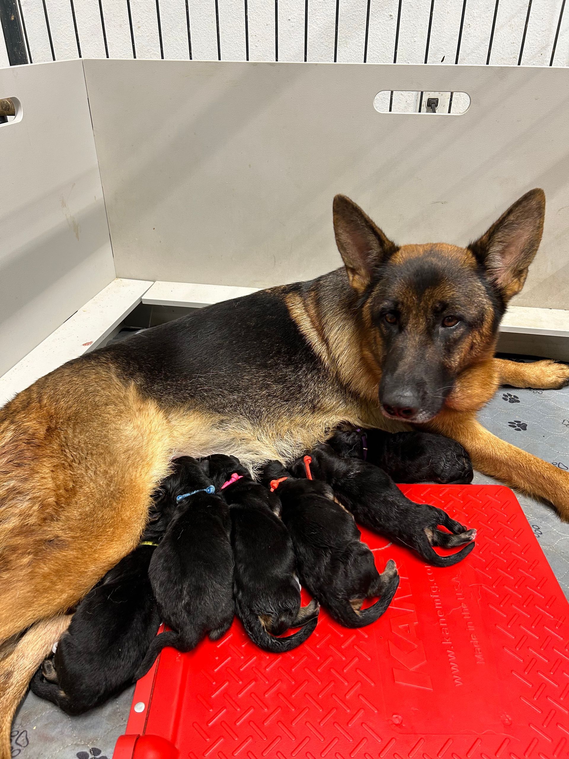Female. Bloodlines include 2017 World Sieger Grand Champion VA1 Gary vom Hühnegrab IPO3, Kkl 1a.