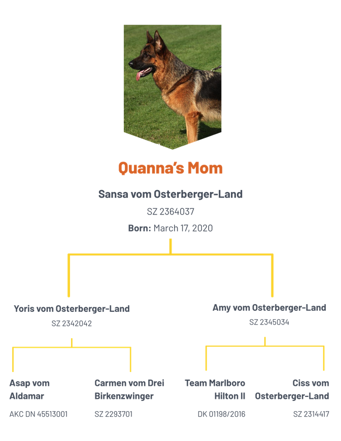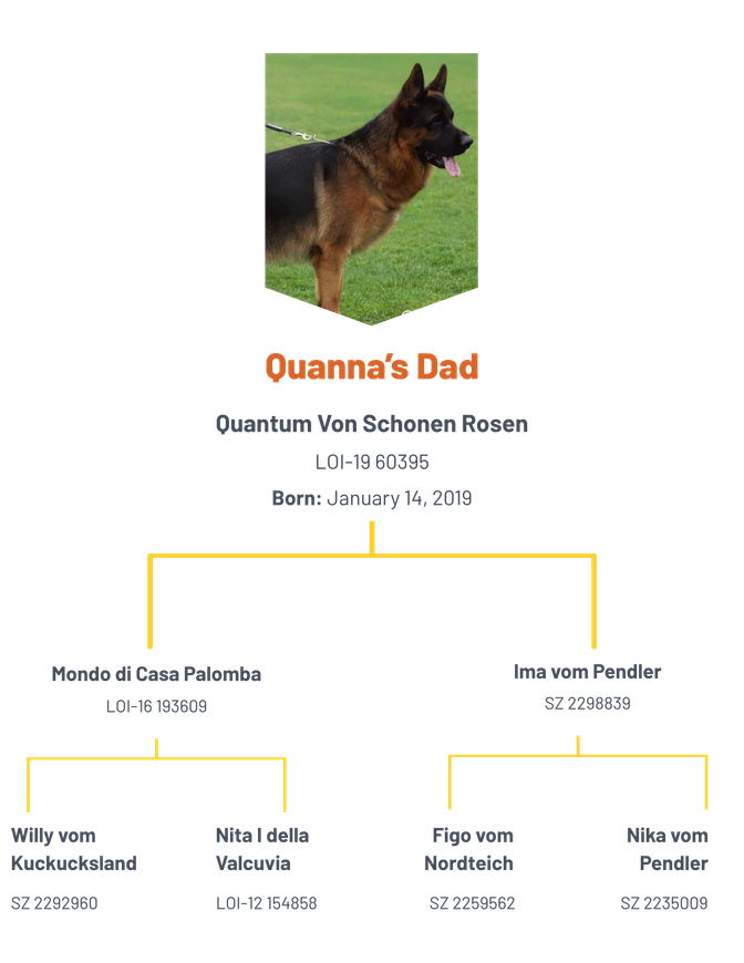 Quanna’s mother was VA as well as SG1 youth Siegerin. Father was a VA and great grandfather VA2 Vice Sieger with a line to Remo.