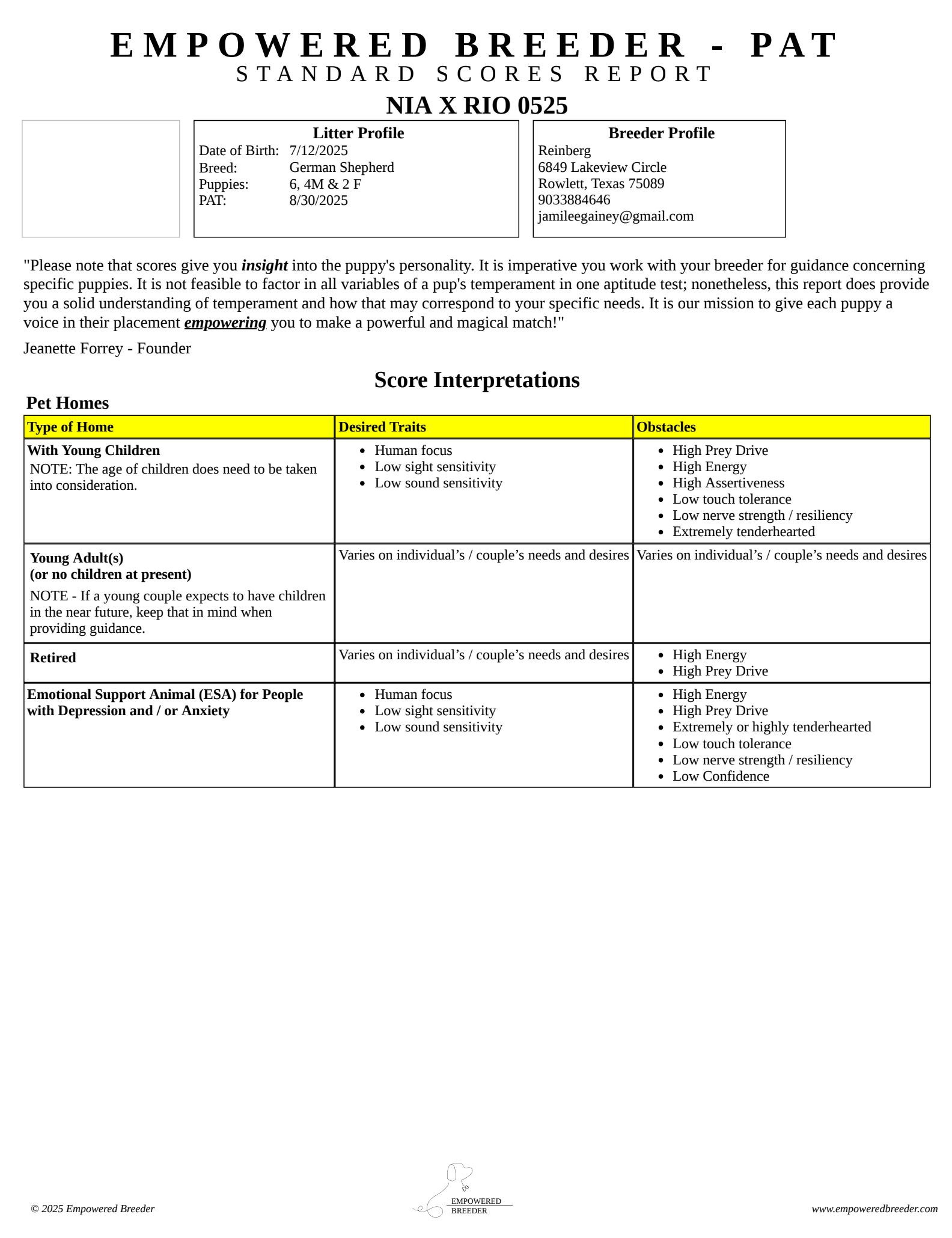 Temperament Testing